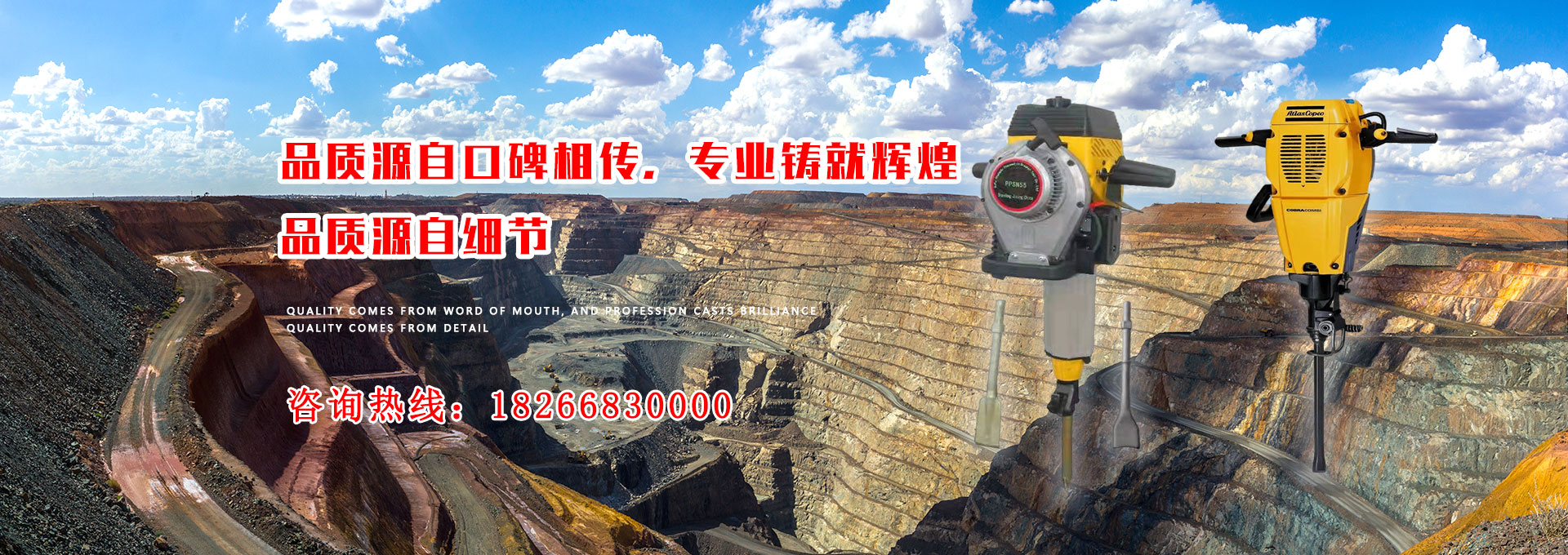 本公司是集開發、制造和銷售于一體的現代化公司,主要生產鑿巖機和破碎鎬,適用于礦山開采和施工作業